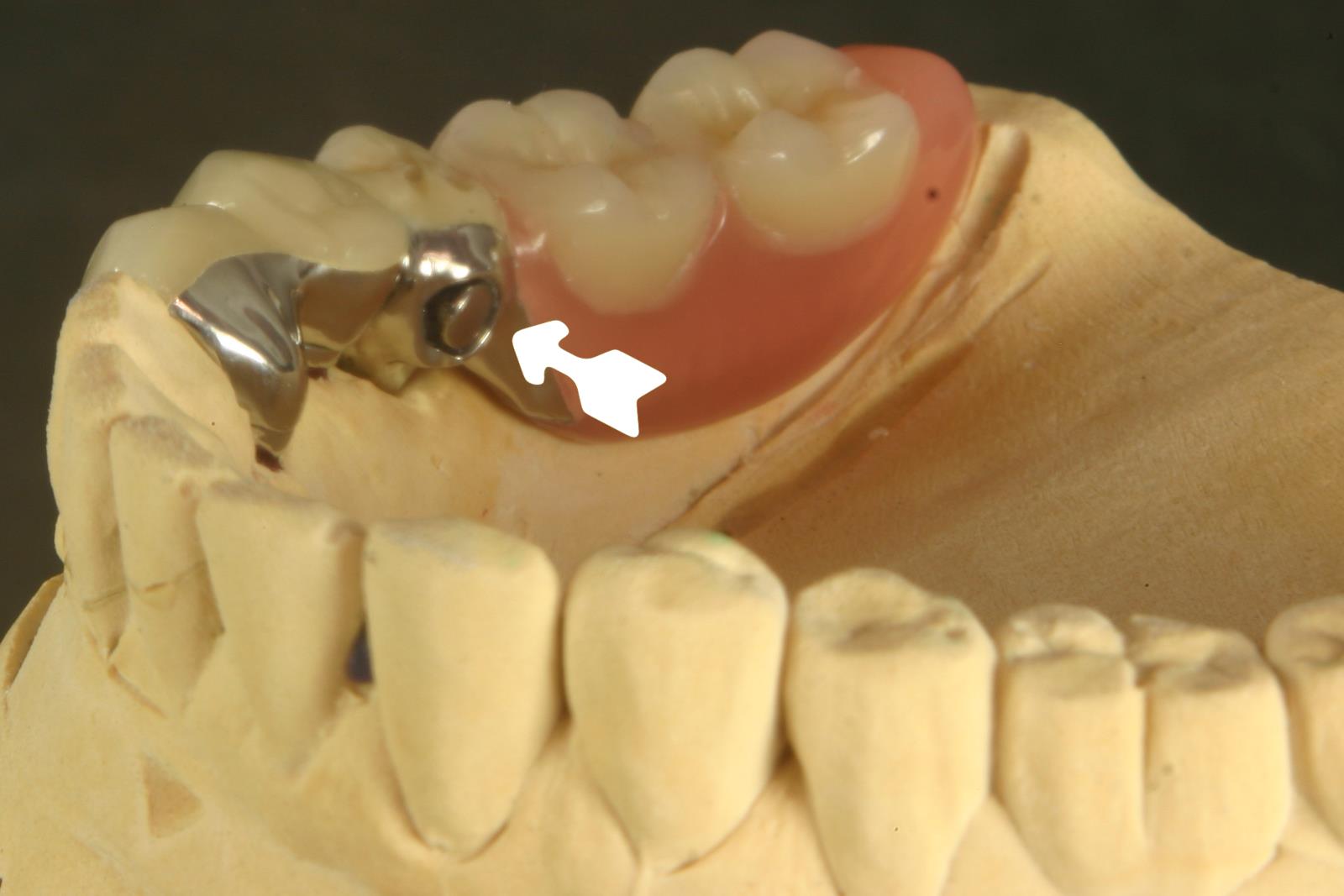 Bei einseitigen Kombinationsprothesen besteht die Möglichkeit des Verschluckens des herausnehmbaren Teils. Dagegen hilft nur eine Verriegelung, die ein unbeabsichtigtes Lösen des Zahnersatzes wirksam verhindern kann. Eine preiswerte Lösung ist ein konfektionierter Riegel (Schubriegel). Er kann auch mit Teleskopen kombiniert werden. Besser wäre es natürlich, ein Implantat zu setzen (wenn möglich). Der Riegel kann mit dem Fingernagel geöffnet und die Prothese entnommen werden.