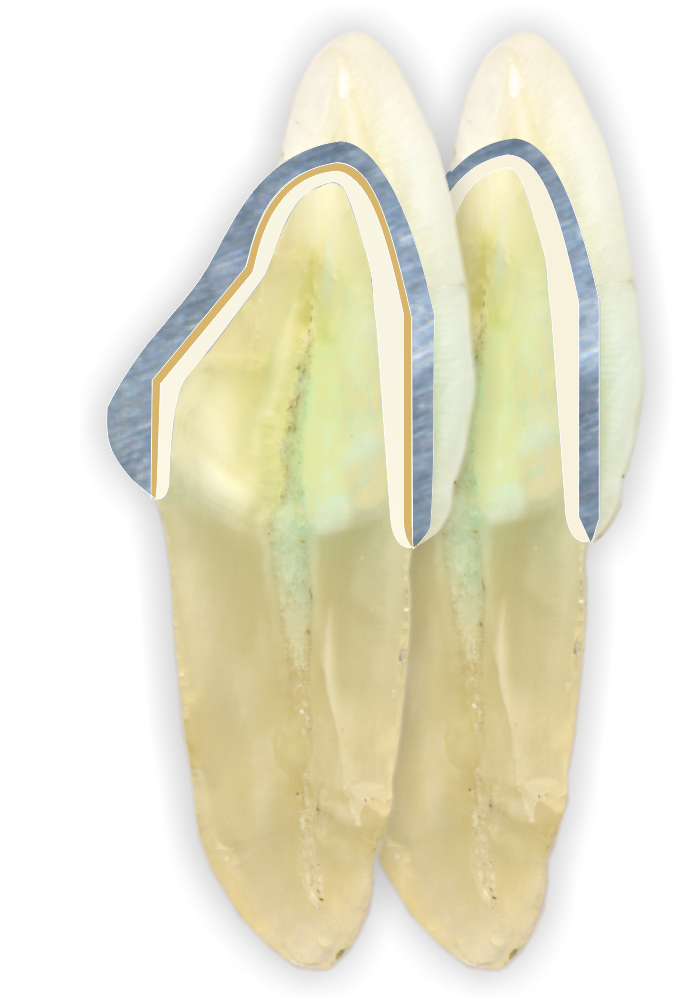 Zirkonprimärteile sind weiß und extrem hart. Dadurch sind die Oberflächen sehr glatt und die abnehmbare Prothese kann sehr gut gehändelt und ausgegliedert werden.