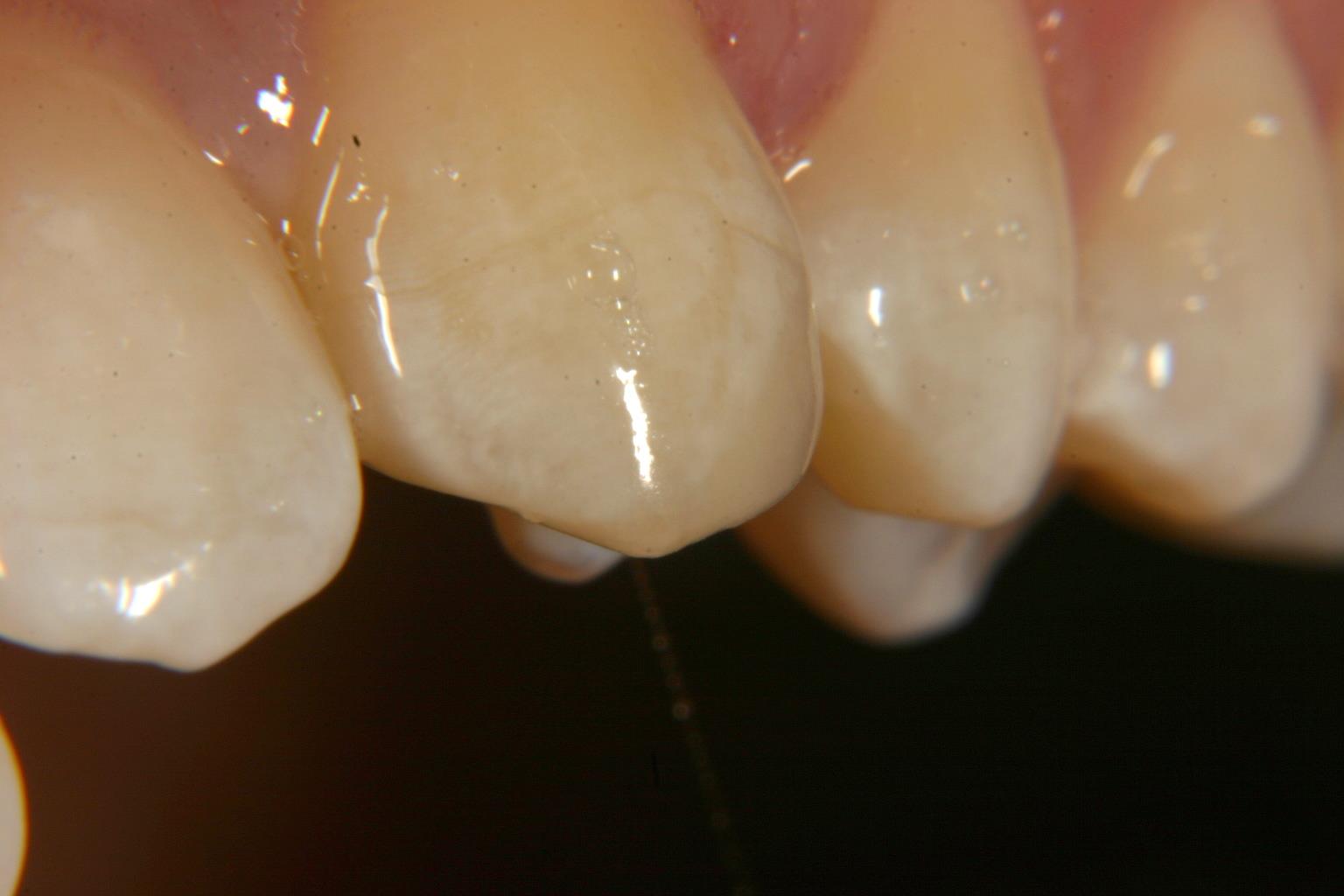 Wenn die Eckzähne stark abgekaut sind, können sie nicht mehr die Schutzfunktion für die Seitenzähne übernehmen. Sie führen normalerweise die Seitwärtsbewegungen des Unterkiefers. Bei stark abgeschliffenen Eckzähnen können schnell im Seitenzahngebiet Verblendungen abplatzen. Mit etwas Keramik kann er wieder etwas verlängert und dadurch die Seitenzähne geschützt werden.